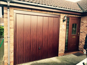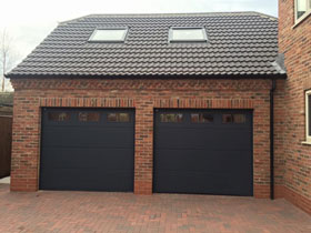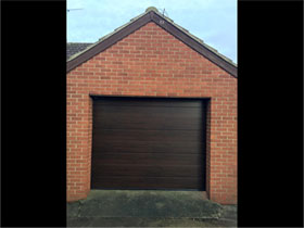 Garador Linear Medium insulated sectional garage door in Dark Oak