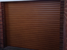 Electric Insulated roller garage door in Golden Oak. |