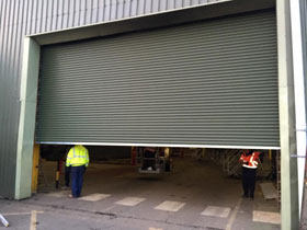 7m x 6m olive green 3 phase electric roller shutter. |